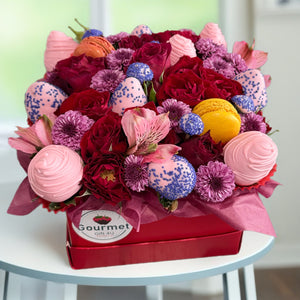 MAKE ANY CELEBRATION EXTRA SPECIAL. WHETHER YOU’RE MARKING A MILESTONE BIRTHDAY, CELEBRATING AN ANNIVERSARY OR GRADUATION, OR WELCOMING A NEW BABY, GOURMET GIFT ARRANGEMENTS FROM GOURMET GIFT 4U OF LOS ANGELES WILL ADD BEAUTY AND DELICIOUS DELIGHT. CHOOSE A THEME TO COORDINATE YOUR GIFT BOX ARRANGEMENT; WE CAN CREATE CUSTOMIZED GIFT BASKET ARRANGEMENTS USING YOUR CHOICE OF COLORS OR FLOWERS. EACH CREATION IS UNIQUE BECAUSE WE USE ONLY THE FRESHEST INGREDIENTS, INCLUDING OUR FLOWERS.